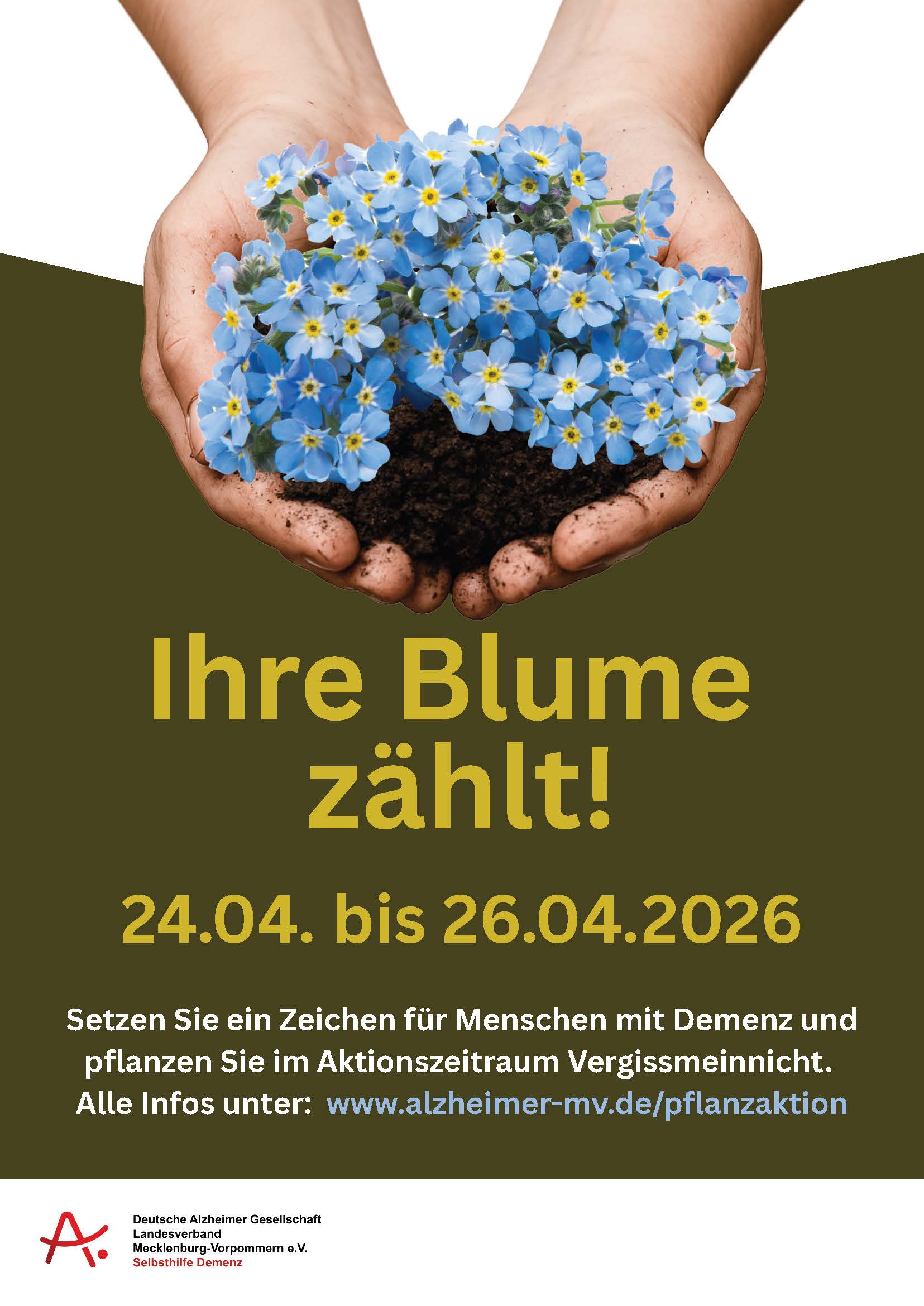 Jede gepflanzte Blume sendet die Botschaft: Ihr seid nicht vergessen. Setzt ein Zeichen für Menschen mit Demenz und pflanzt ein Vergissmeinnicht.Â